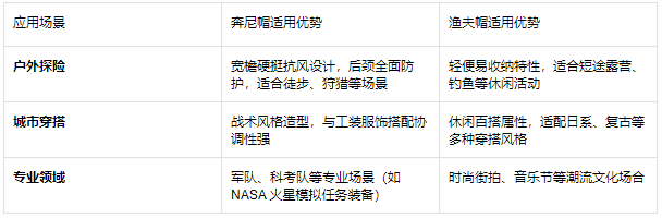 - 企業定制場景:戶外品牌及軍隊采購優先考慮奔尼帽,快消時尚與文旅項目更適合漁夫帽定制。